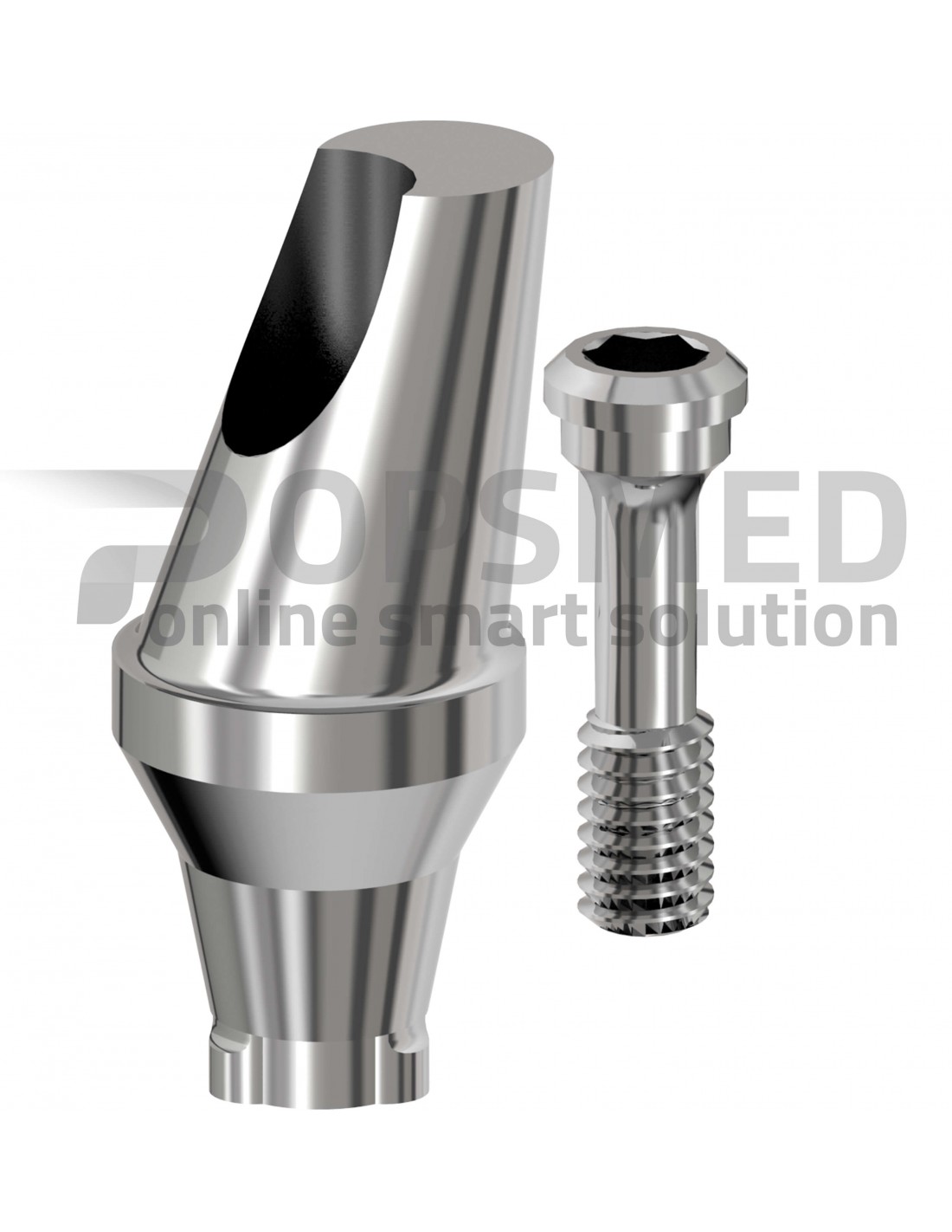 The Angled Abutment is an abutment made of titanium grade 5, for a cemented prosthesis with screw included. Both the 15° and 25° are available. The use of angled abutments is recommended to improve the axis of the implant in a fixed prosthesis.